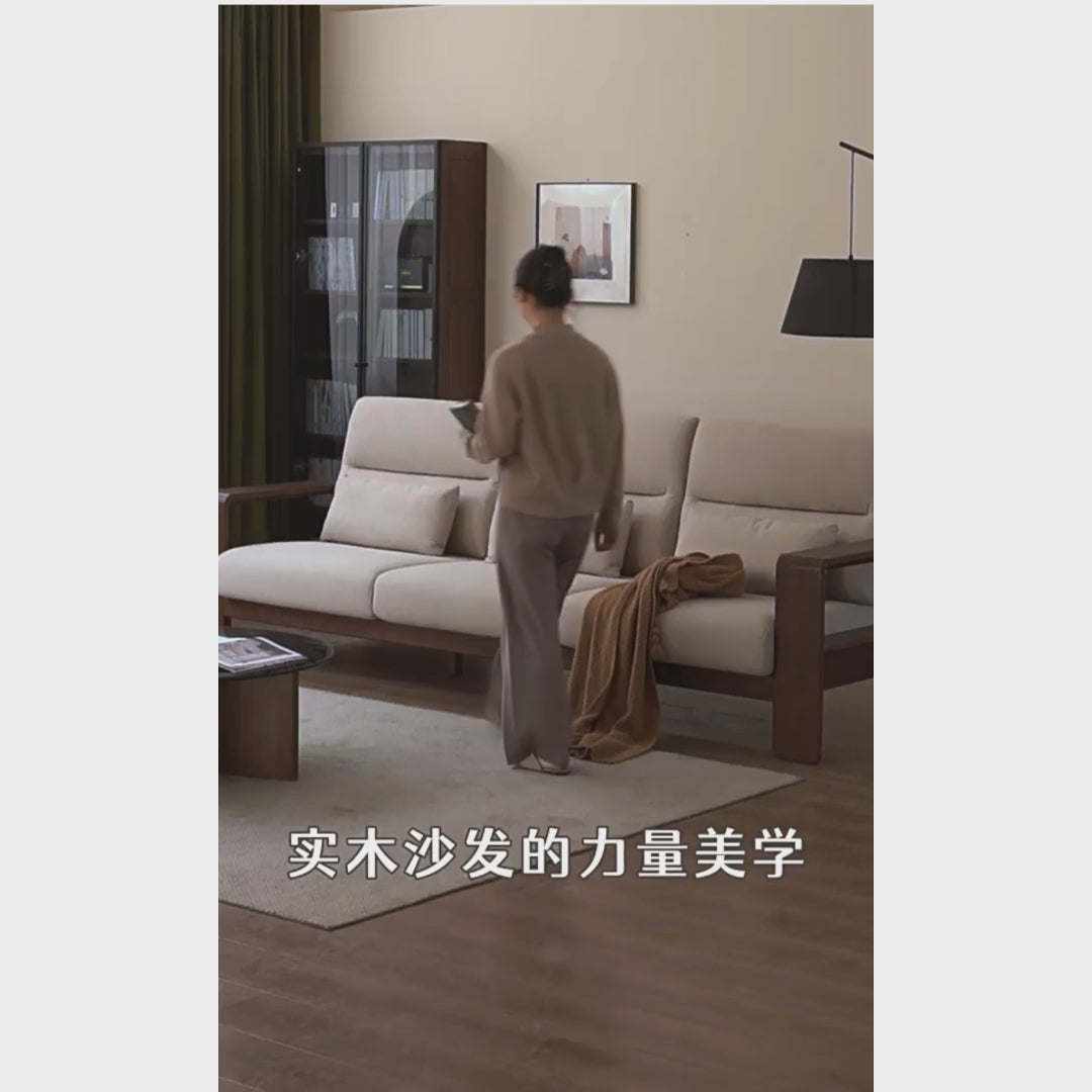 Oak Solid Wood High Back Fabric Corner Sofa Modern.