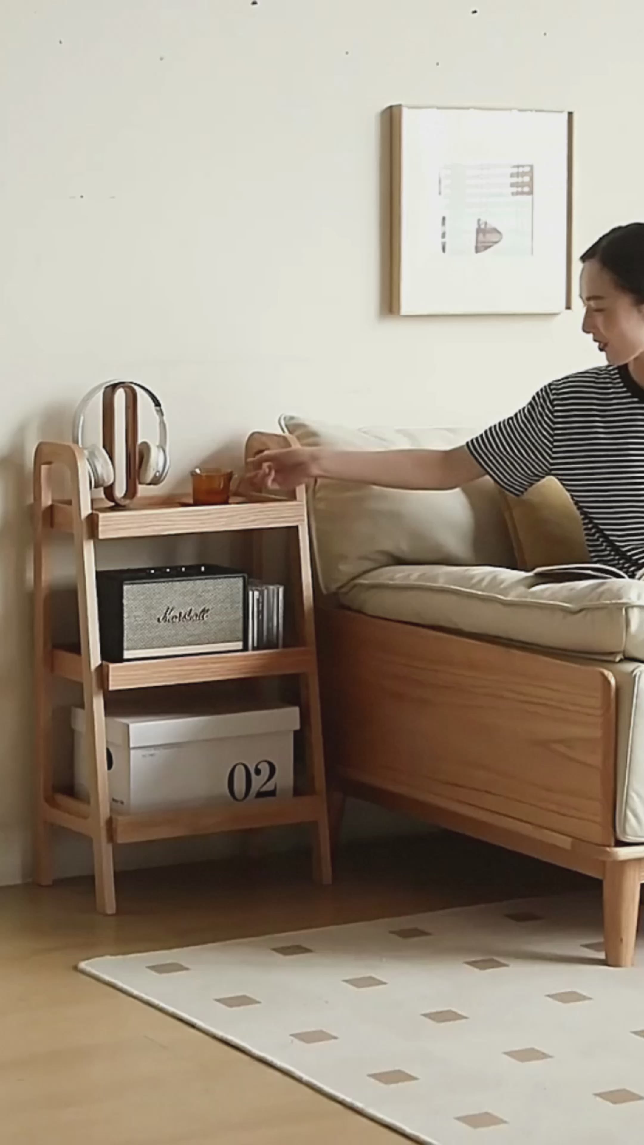 Oak Solid Wood Trapezoidal Three-Tier Bookshelf, Side Table