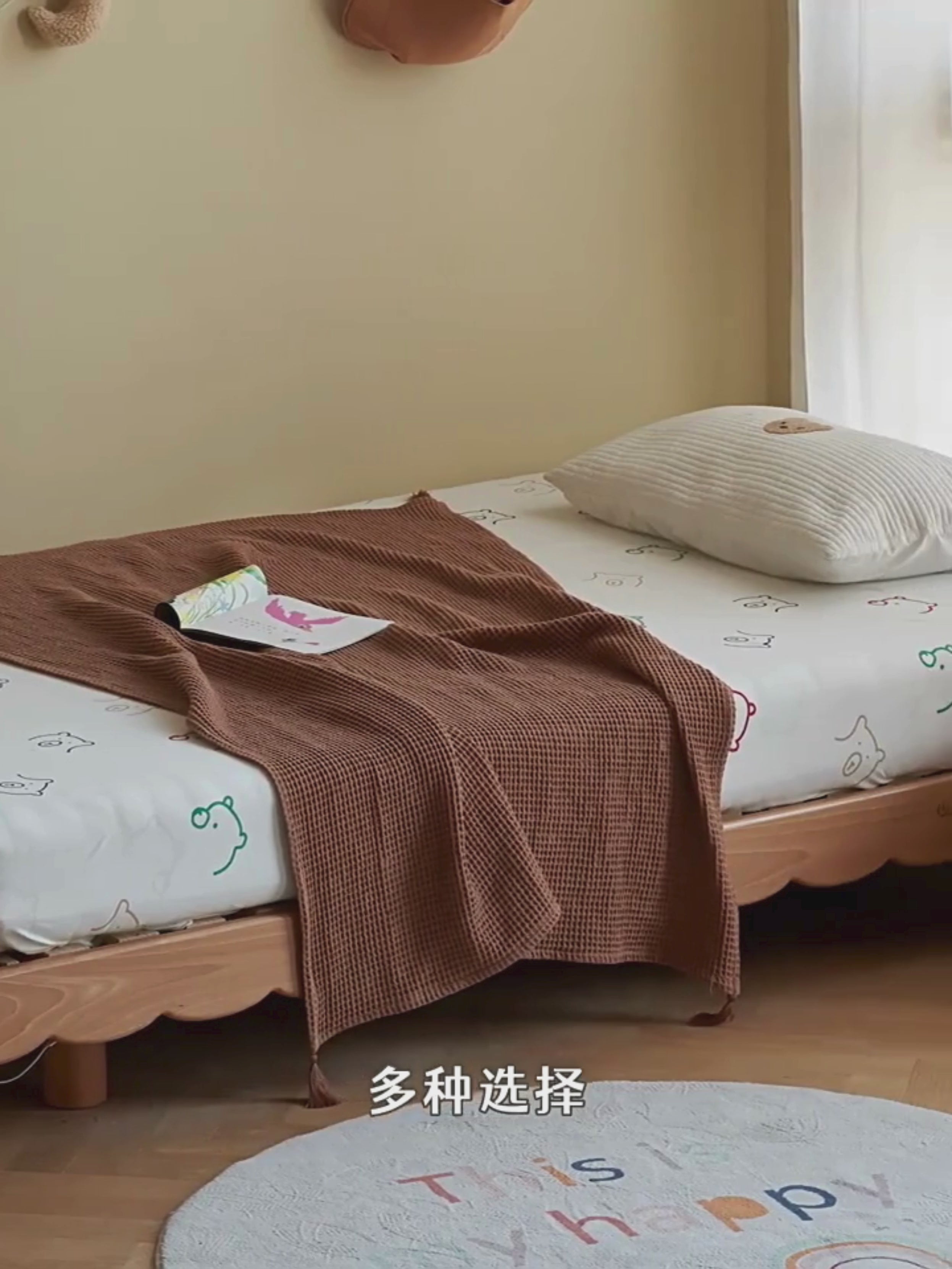 Beech Solid Wood Soft Children's Single Platform Bed, Headboard-Free Bed
