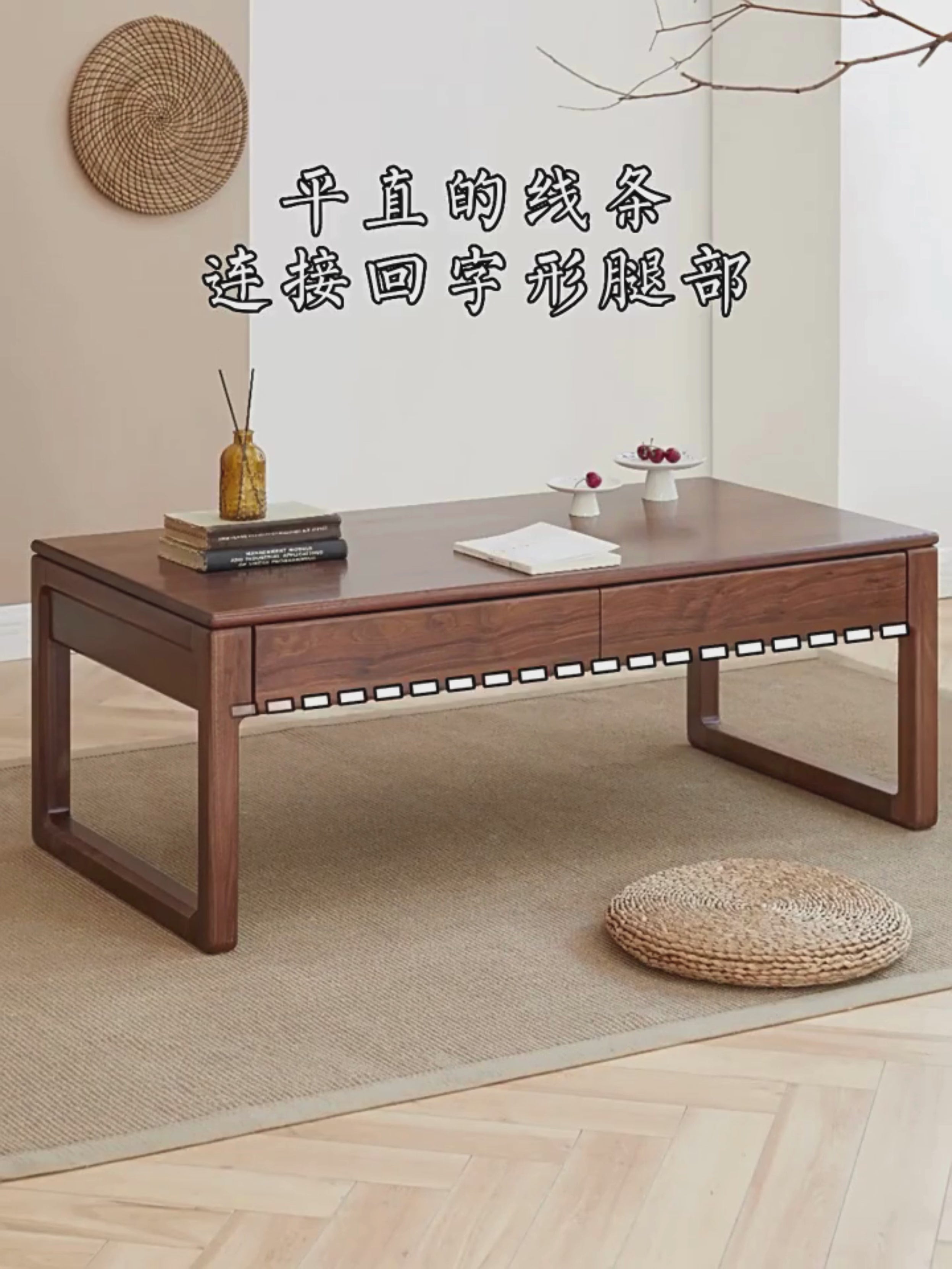 Want to create a new Chinese style living room?Then you can't miss this coffee table!•The straight lines connect the back-shaped legs, which are chic and beautiful, tall and elegant• *Double-sided double drawers, classification and storage at the bottom of the cabinet, the figure is more lightweight and placed at home, it looks great!