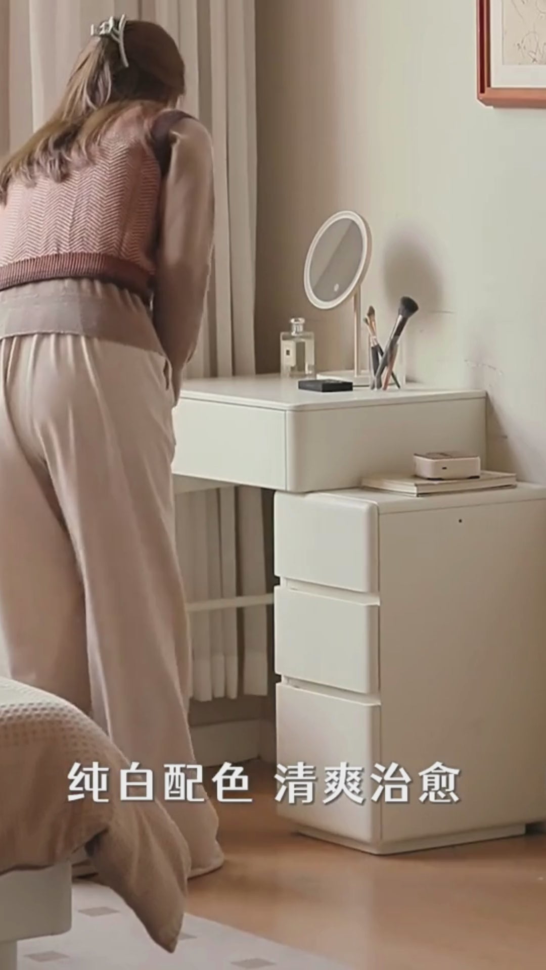 Poplar Solid Wood Telescopic Small Dressing Table Cream Style.