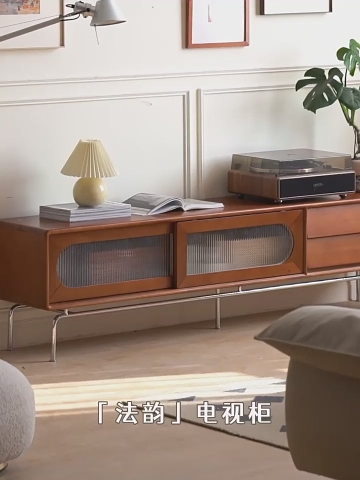 Oak, Poplar Solid Wood Light French TV Cabinet Sliding Door.