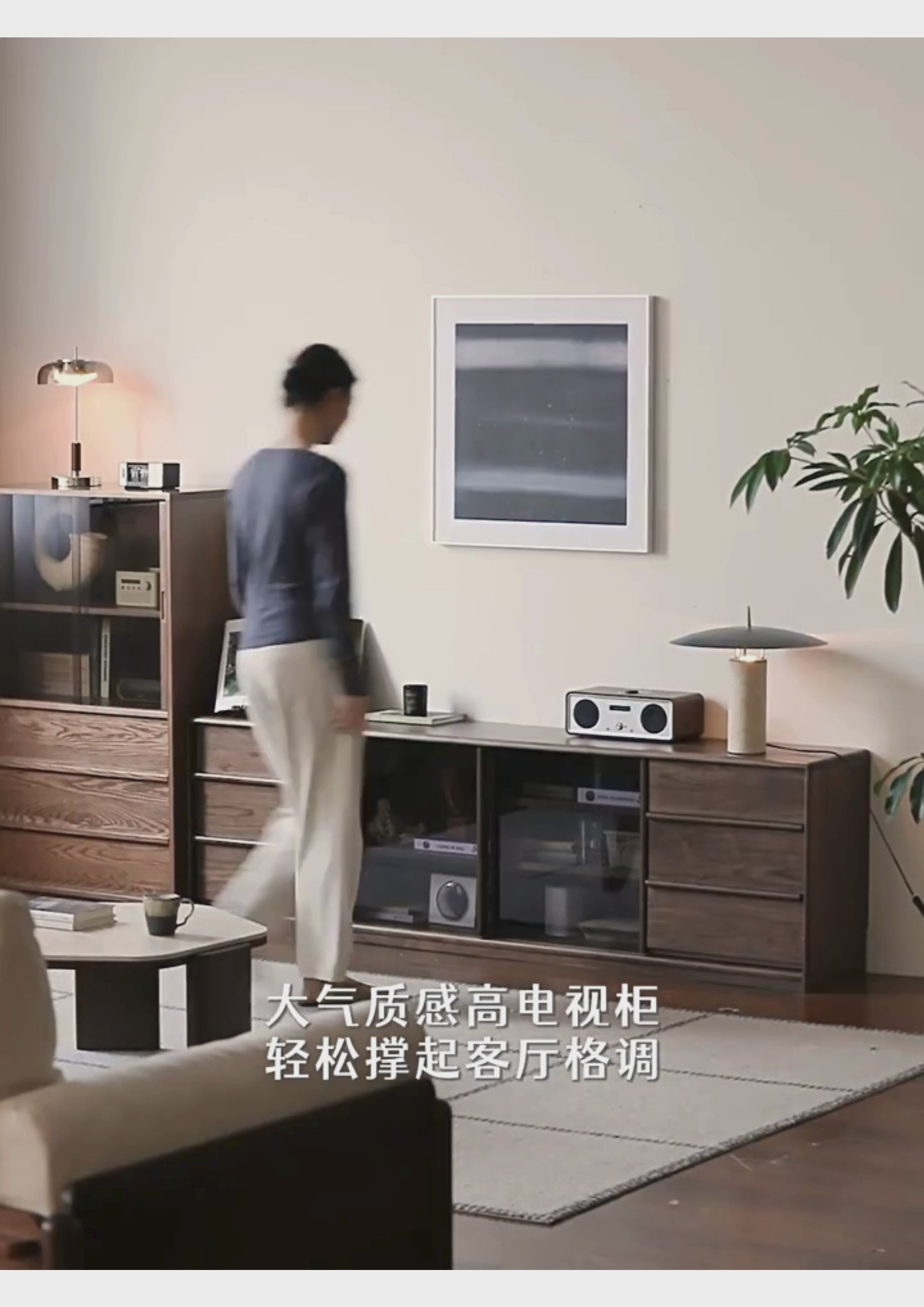 Black Walnut Solid Wood TV Cabinet with Large Storage