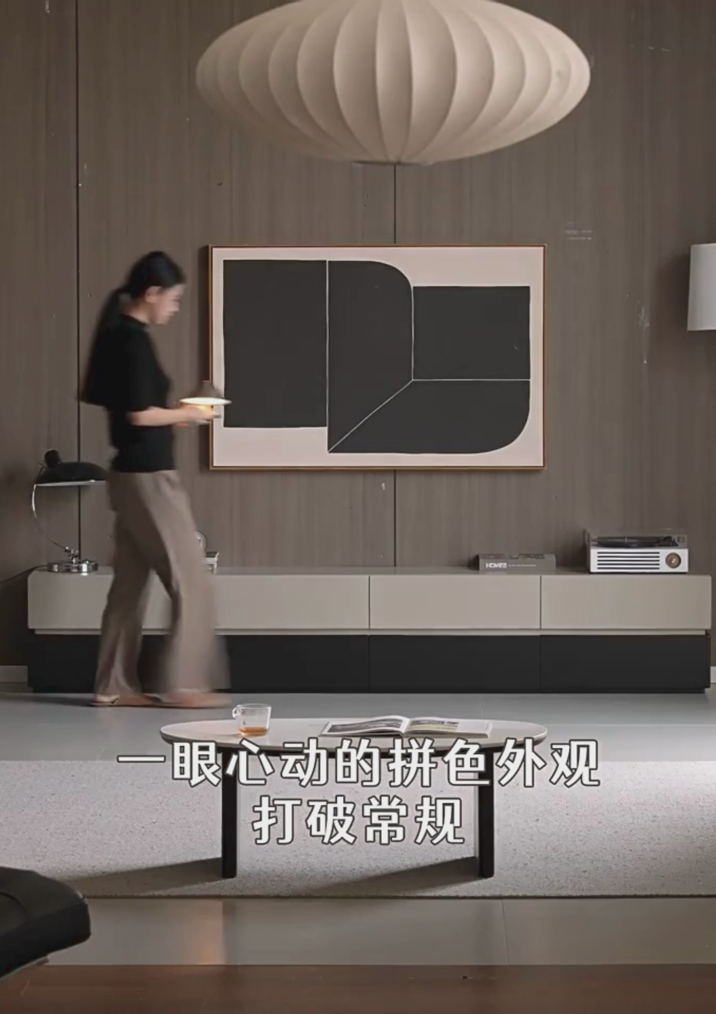 Solid Rubberwood Italian Light Luxury TV Cabinet