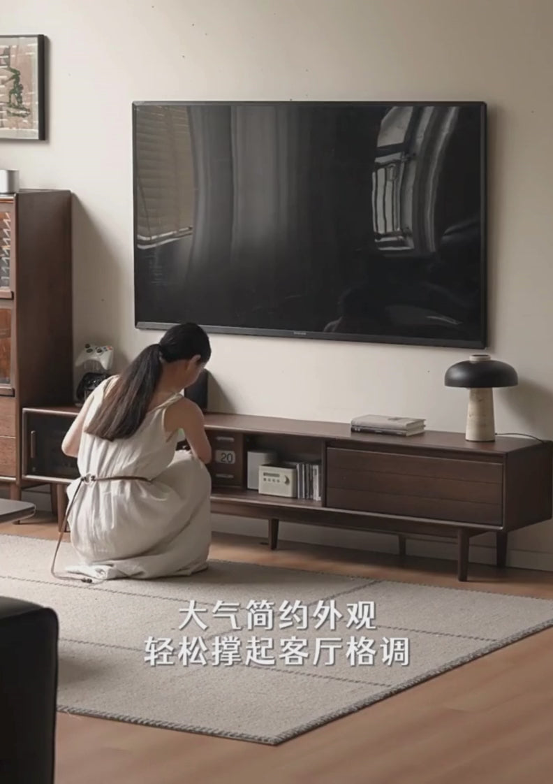 Black Walnut, Oak Solid Wood Sliding Doors TV Cabinet
