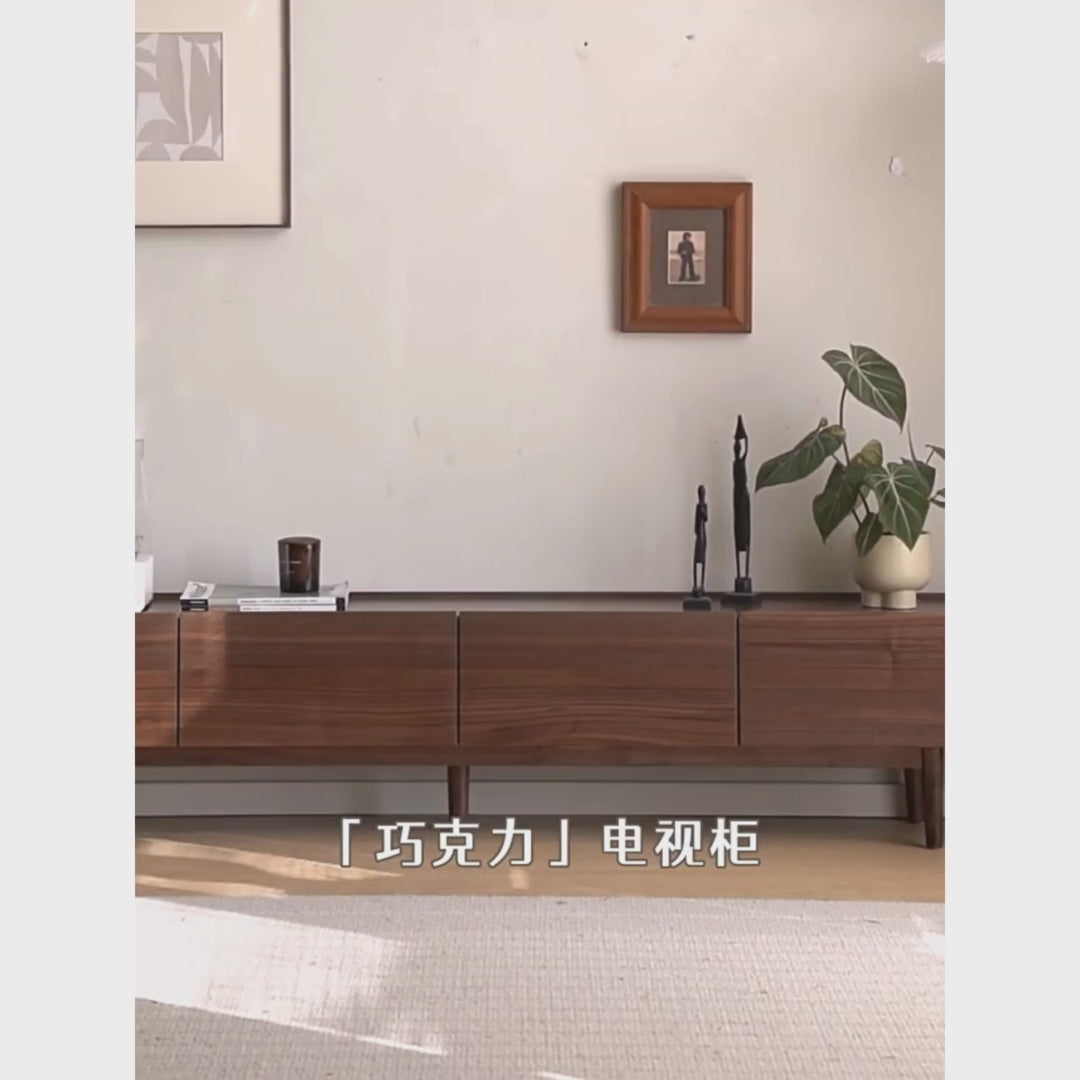 Black Walnut Solid Wood TV Cabinet, Modern and Minimalist