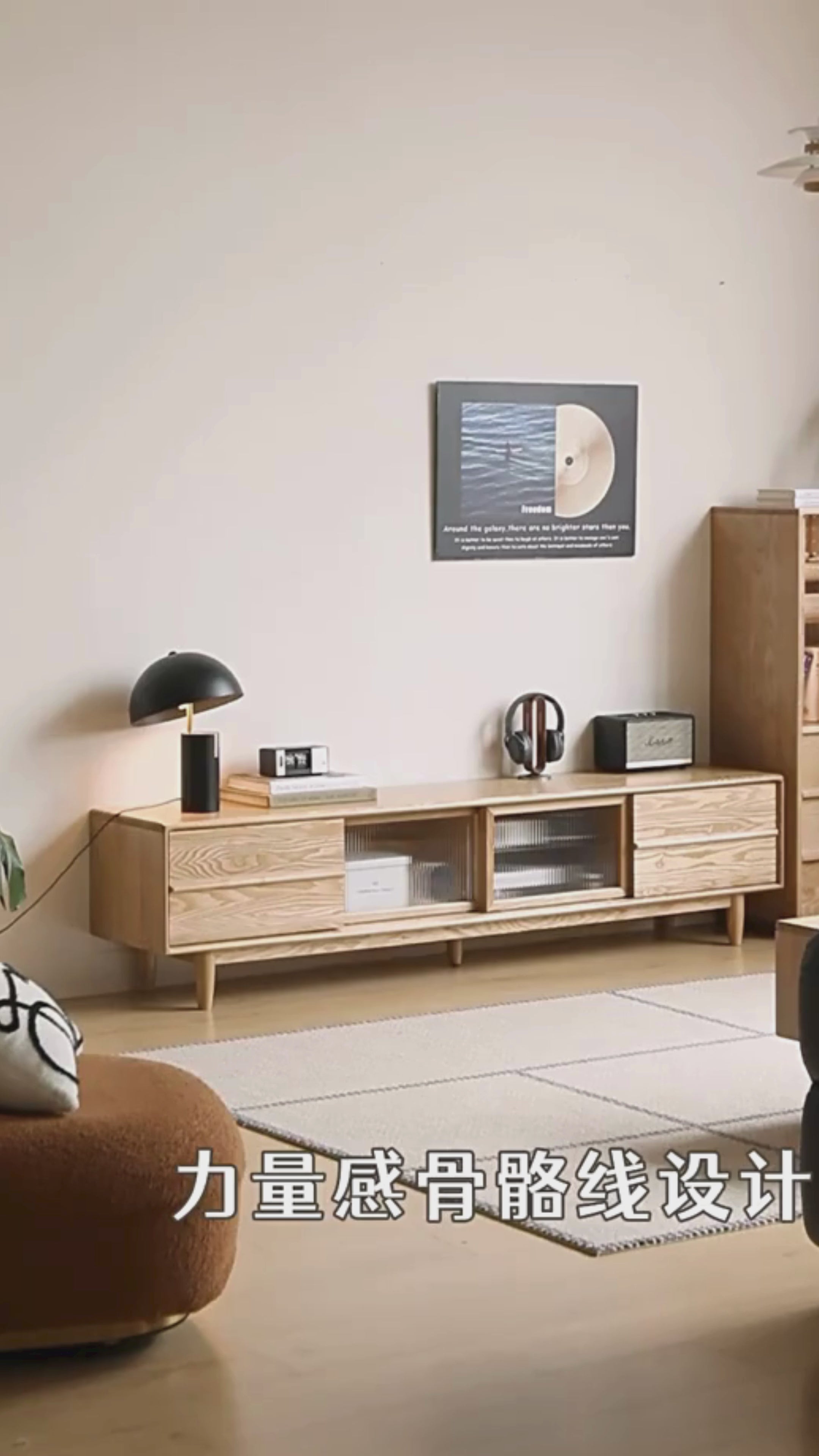 Ash Solid Wood Modern Log Style TV Cabinet