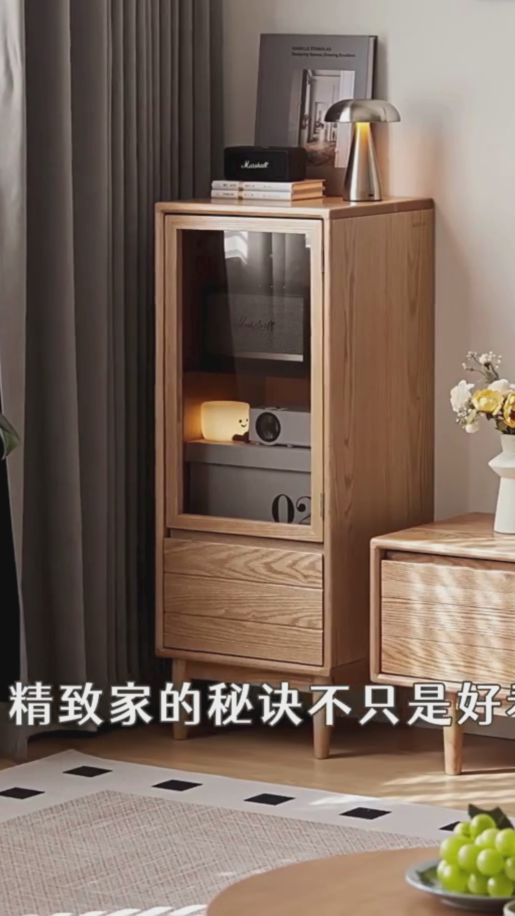 Oak Solid Wood Modern Simple Storage Side Cabinet.