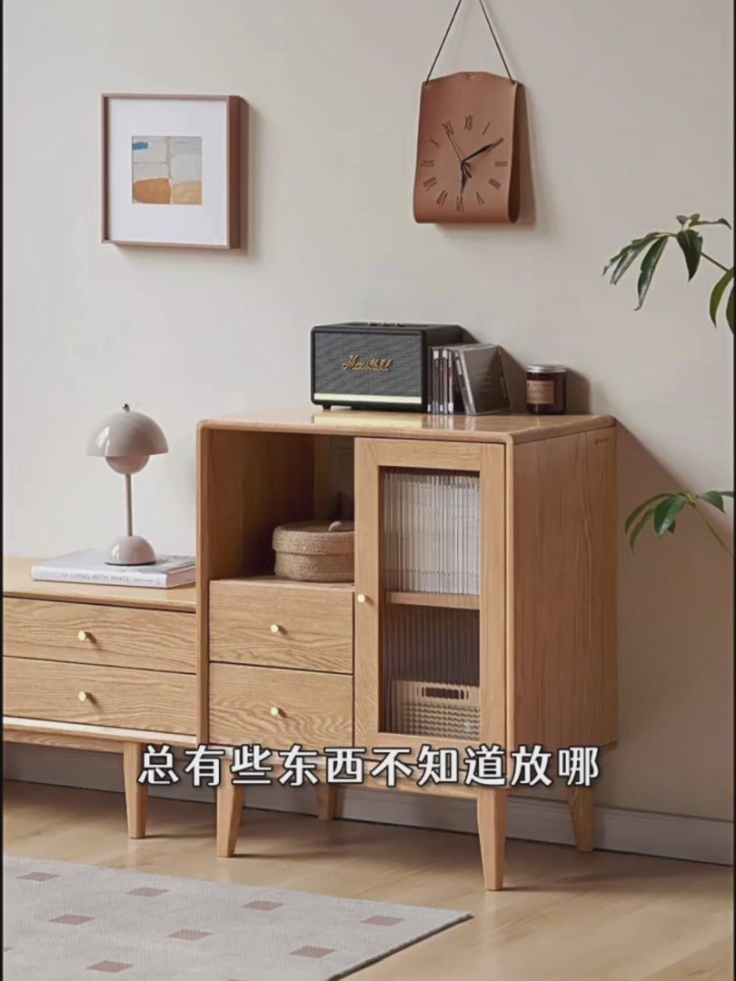 Rubberwood, Beech, Oak Solid Wood Nordic Side Cabinet