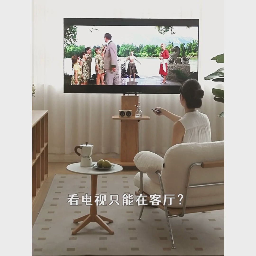 Oak Solid Wood TV Stand, Mobile Floor to Floor TV Cabinet.