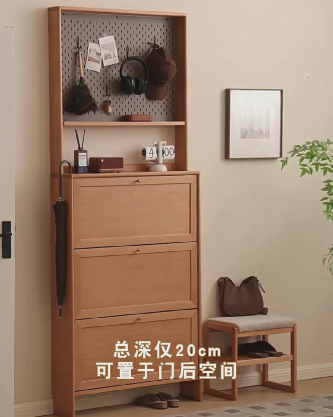 Beech Solid Wood Ultra-Thin Flip Bucket Shoe Cabinet
