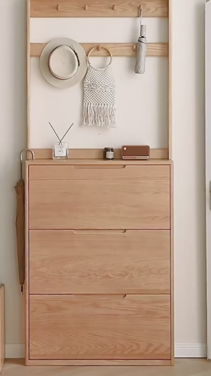Oak, Poplar Solid Wood Ultra-Thin Shoe Cabinet