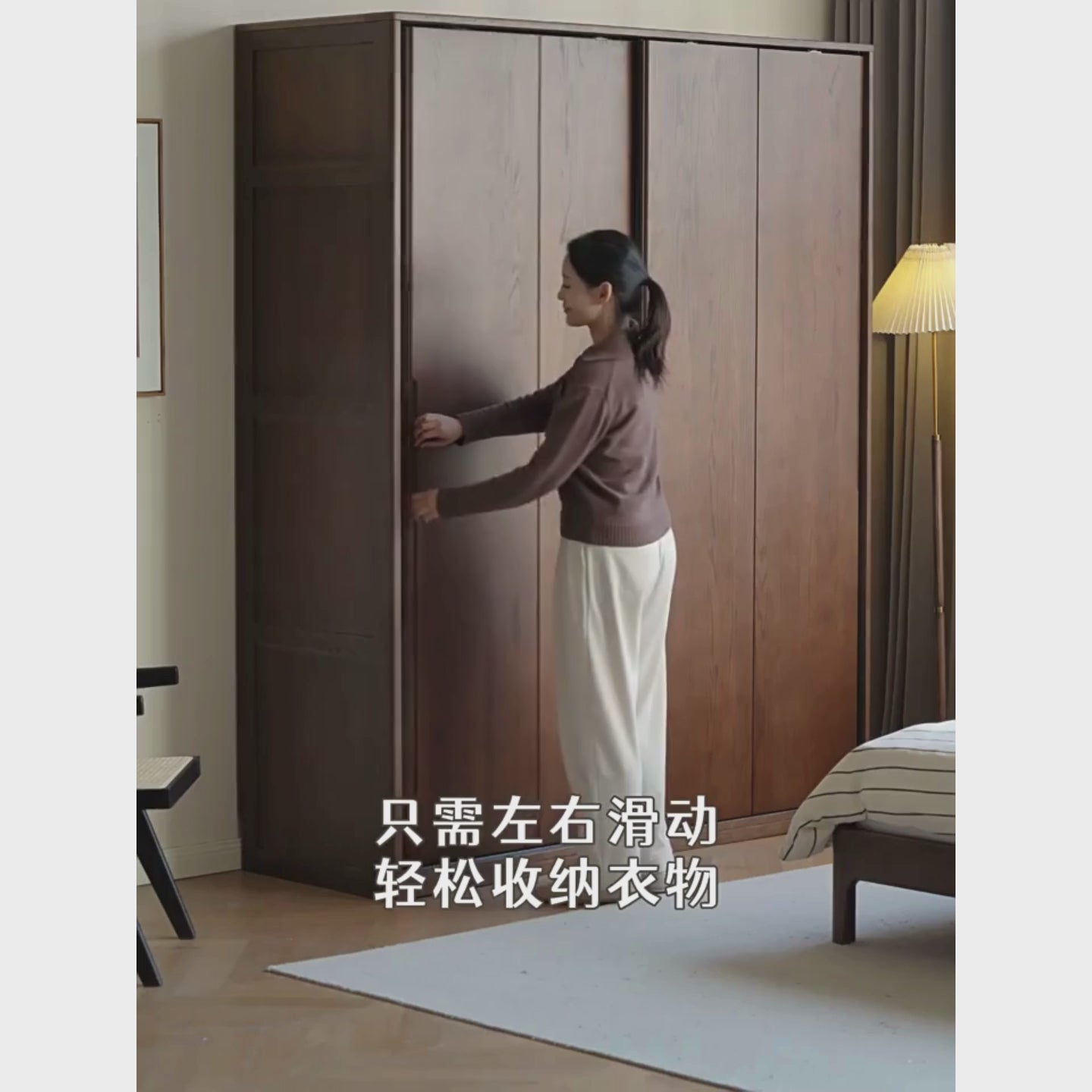 Oak Solid Wood Sliding Door Modern Wardrobe