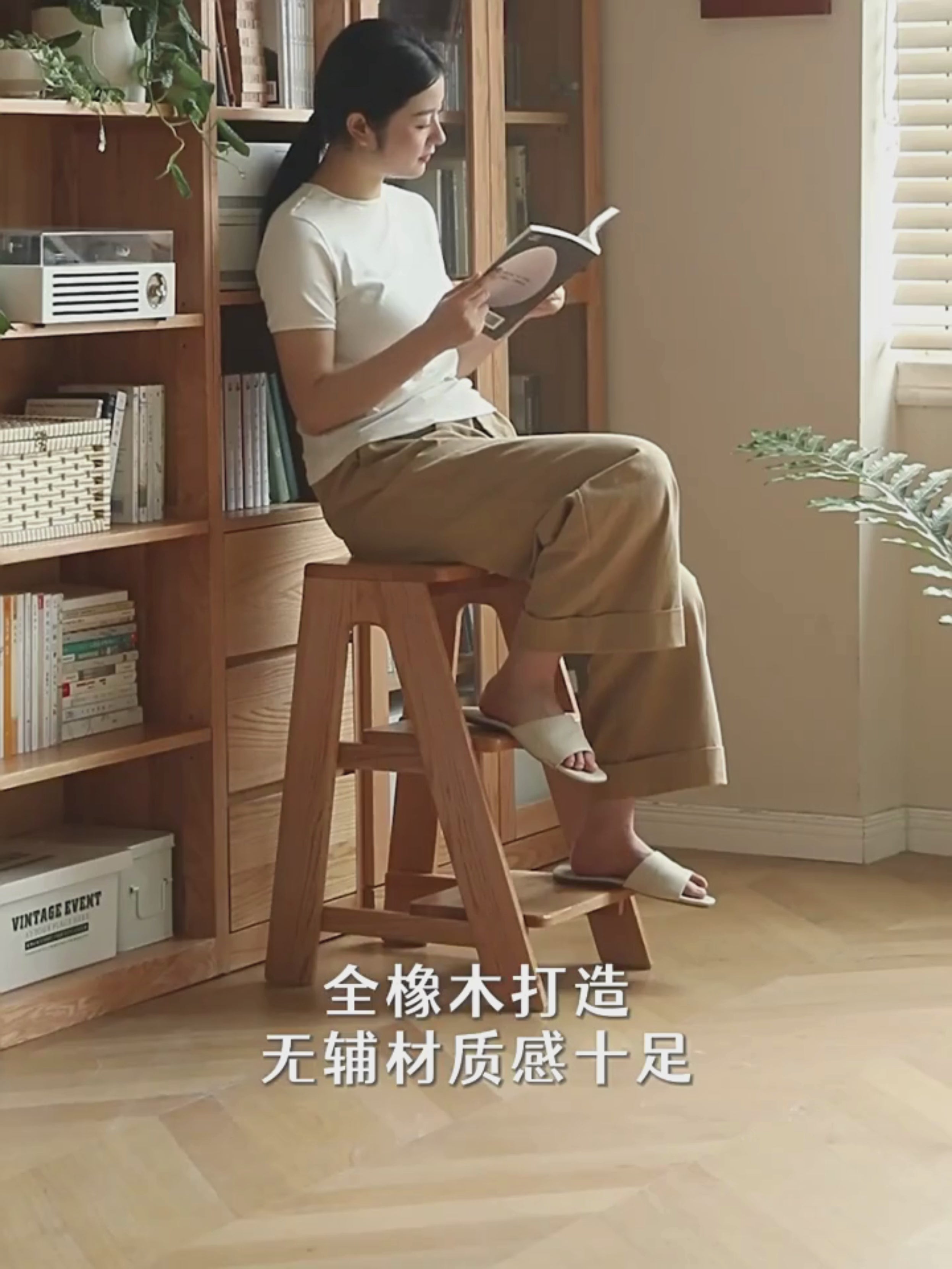 Let's unlock this "almighty" small ladder of love~ It can be used as a small ladder, which is convenient and stable for climbing and picking up objects.Transform into a bar party, the height of 65cm is just right.A few small sides/small flower stands can also be competent.Made of all oak, it is heavy to start with and full of texture.