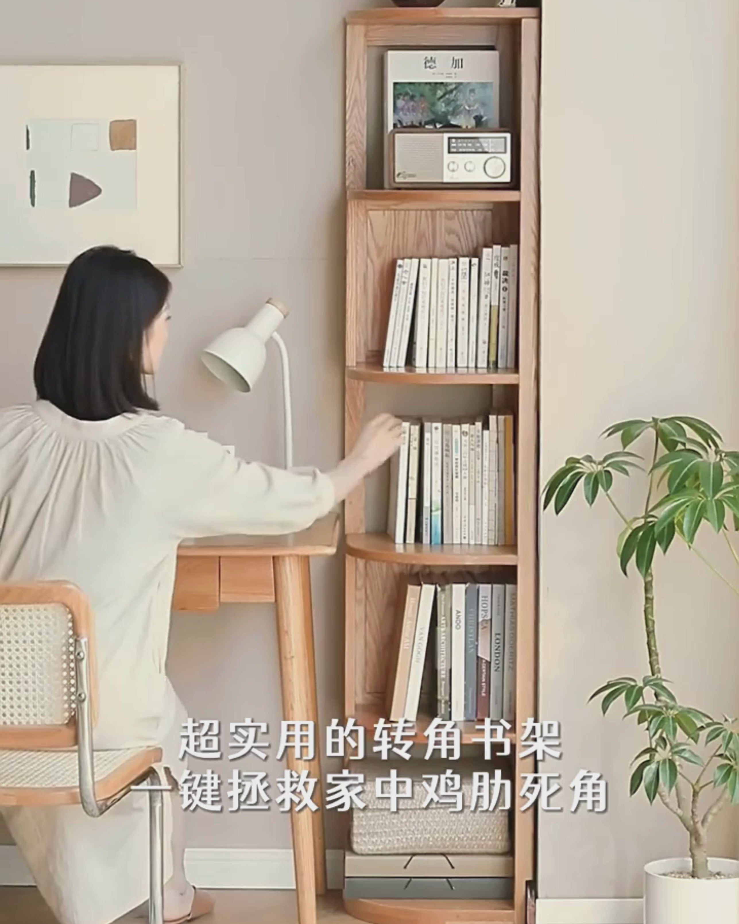 Ash, Oak, Solid RubbberWood Corner Bookshelf