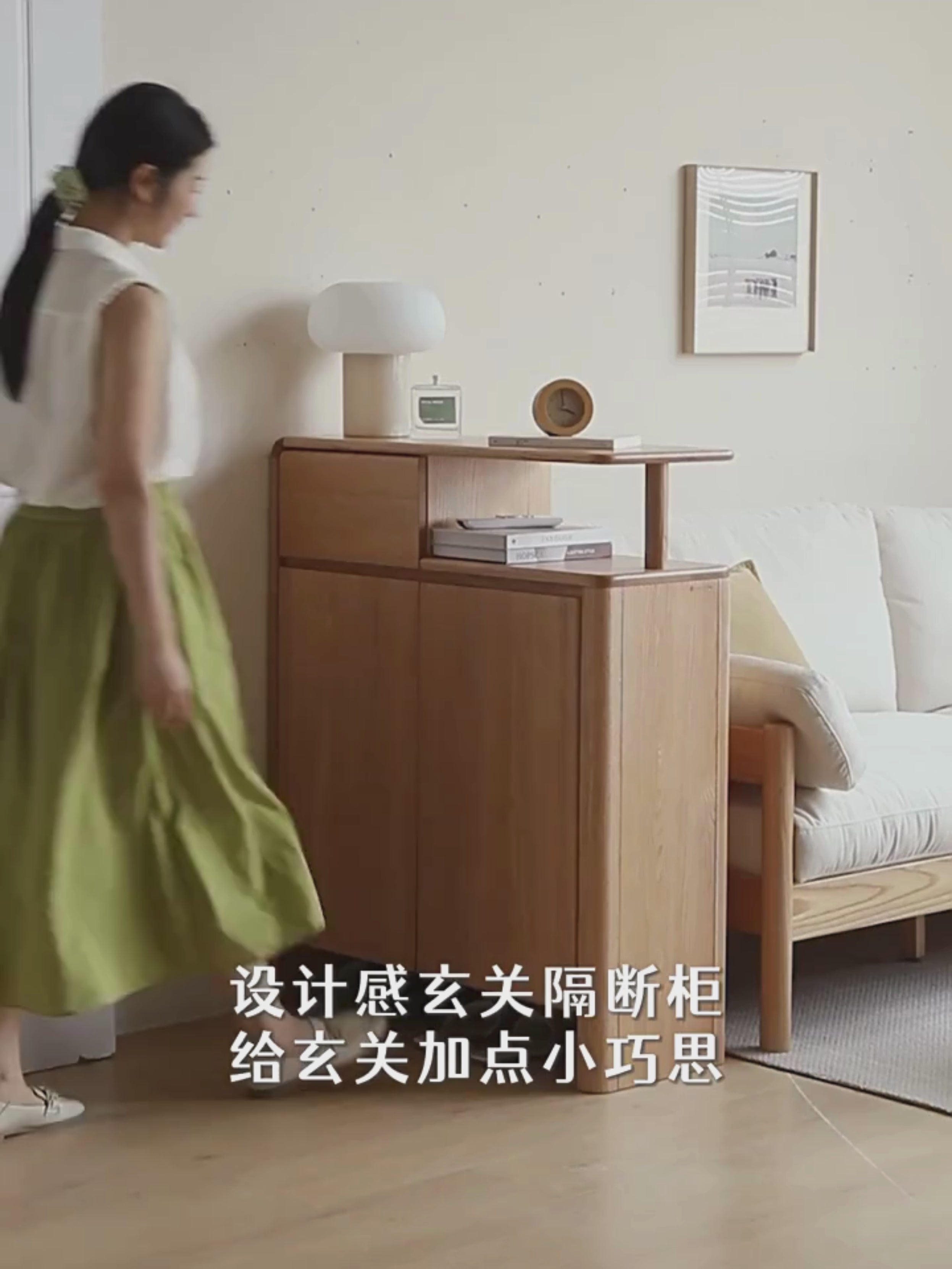 Oak Solid Wood, Solid Rubberwood Partition Entry Porch Shoe Cabinet